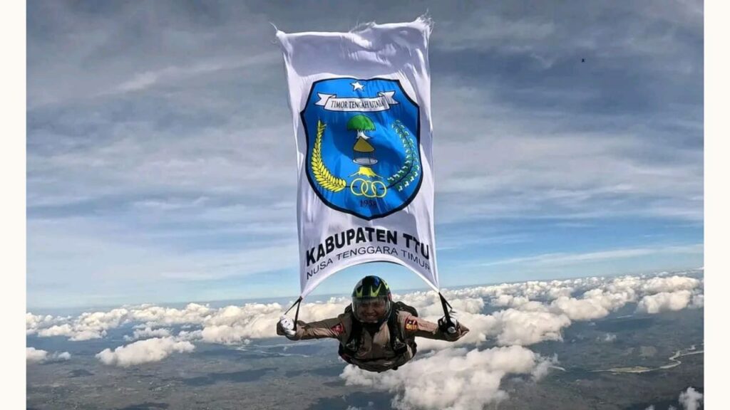 Tak lama berselang, regu penerjun berikutnya melayang anggun di udara. Dengan selisih waktu sekitar satu menit, satu per satu mereka mendarat dengan sempurna. Warna-warni parasut menambah semarak suasana, sementara lantunan sorakan penonton semakin menghangatkan perayaan. “Ini perdana di Kabupaten TTU,” ujar seorang warga dengan wajah berseri-seri.