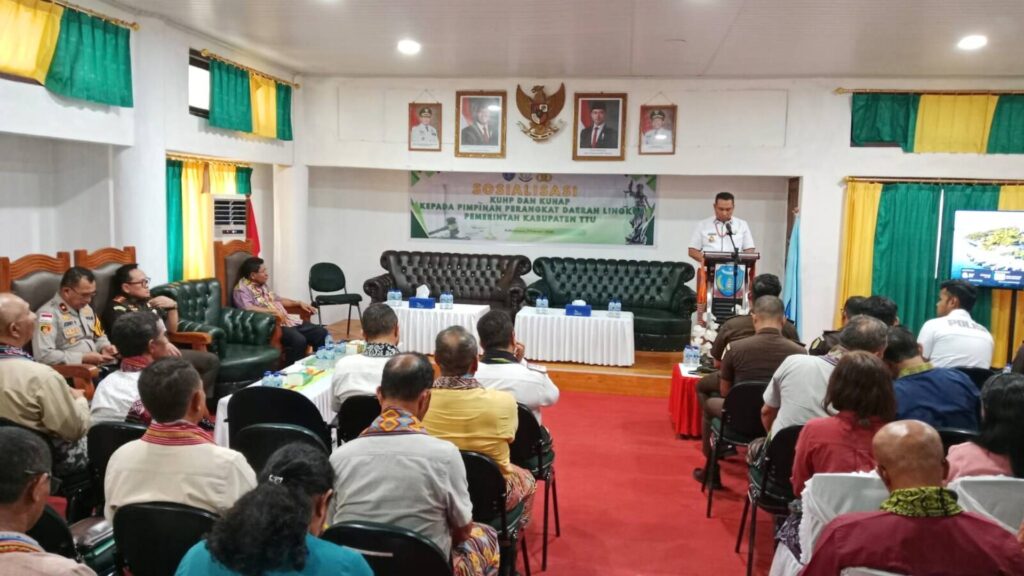 Kegiatan yang merupakan bagian dari Penerangan Hukum Nasional ini digelar di Aula Lantai II Kantor Bupati TTU mulai pukul 13.45 WITA, sebagai tindak lanjut pemberlakuan Undang-Undang Nomor 1 Tahun 2023 tentang KUHP dan Undang-Undang Nomor 20 Tahun 2025 tentang KUHAP.