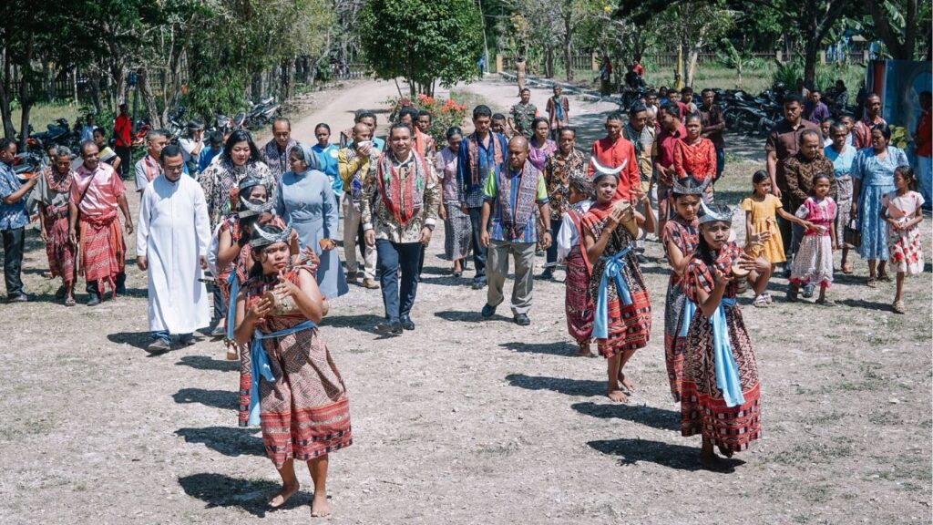 Bupati TTU dan rombongan disambut oleh para panitia, Pastor dan Umat Paroki St. Antonius Maria Claret Oenopu, Sabtu (25/10/2025). (Foto : Edwin/Kominfotik TTU