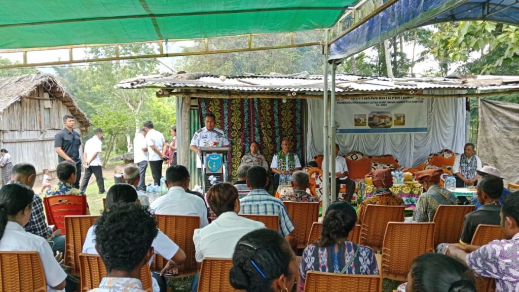 KEFAMENANU NEWS,- Bupati Timor Tengah Utara (TTU), Nusa Tenggara Timur (NTT), Yosep Falentinus Delasalle Kebo, S.IP., M.A., secara simbolis melakukan peletakan batu pertama pembangunan tujuh unit Rumah Layak Huni – Terima Kunci Plus Sanitasi (RLH–TULUS), Rabu (3/12/2025).