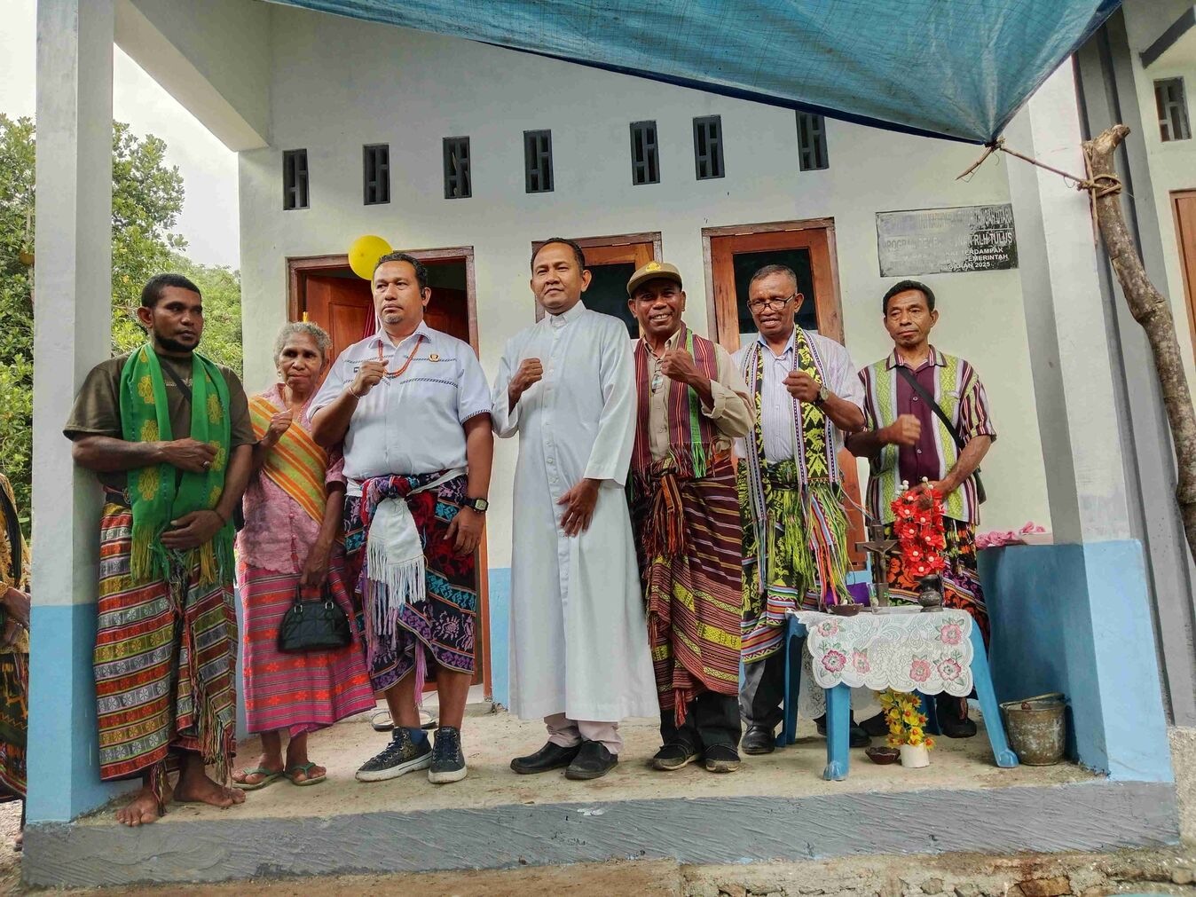 Kegiatan kemudian dilanjutkan dengan pemberkatan rumah oleh Pastor Paroki Santa Maria Diangkat ke Surga Eban, Miomaffo Barat, Romo Ignatius Manek Kabosu, Pr.