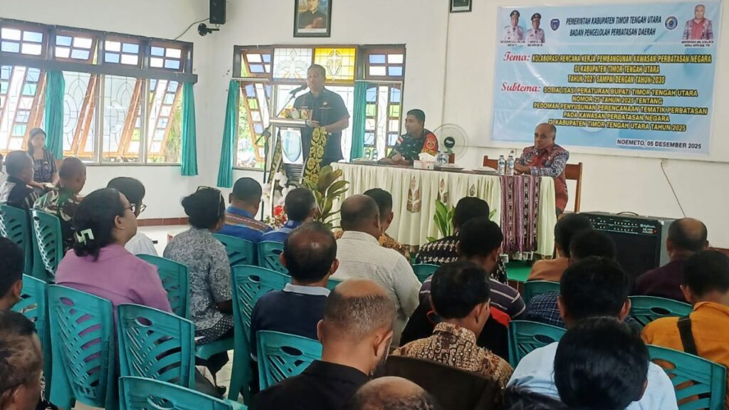 KEFAMENANU NEWS,- Badan Pengelola Perbatasan Daerah (BPPD) Kabupaten Timor Tengah Utara (TTU) menggelar kegiatan Kolaborasi Rencana Kerja Pembangunan Kawasan Perbatasan 2027–2030, sekaligus mensosialisasikan Peraturan Bupati TTU Nomor 25 Tahun 2025. Kegiatan berlangsung di Aula Soverdi Noemeto, Jumat (5/12/2025).