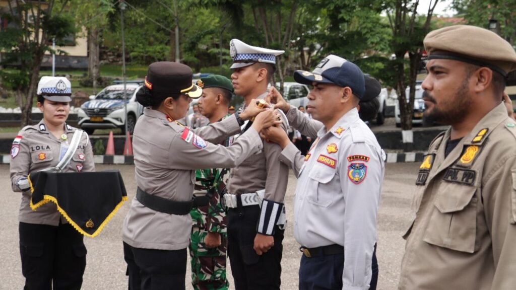 Dua orang personel Sat Pol PP dan Dinas Perhubungan bersama perwakilan Kodim 1618/TTU dan Sat Lantas Polres TTU ikut menjadi perwakilan penerimaan tanda penyamatan yang dilakukan langsung oleh Kapolres TTU, AKBP Eliana Papote, S.I.K., M.M.