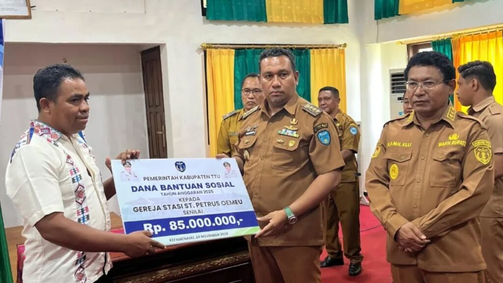 KEFAMENANU NEWS,– Pemerintah Kabupaten Timor Tengah Utara (TTU) melalui Bagian Kesejahteraan Rakyat (Kesra) menyerahkan secara simbolis dana bantuan sosial yang bersumber dari APBD TTU Tahun Anggaran 2025. Penyerahan berlangsung di Aula Kantor Bupati TTU, Senin (24/11).