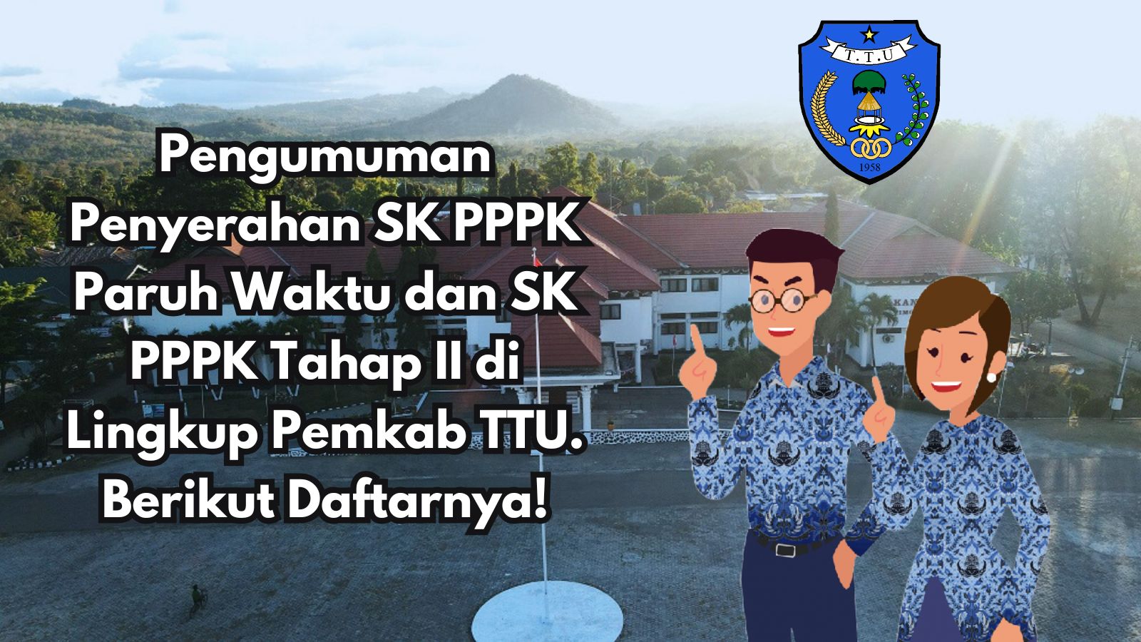 Pemerintah Kabupaten Timor Tengah Utara Melalui Badan Kepegawaian dan Pengembangan Sumber Daya Manusia Daerah Kabupaten Timor Tengah Utara Mengumumkan undangan Penerimaan Surat Keputusan Bupati TTU Tentang Pengangkatan PPPK Paruh Waktu dan PPPK Tahap Kedua di Lingkungan Pemerintah Kabupaten Timor Tengah Utara.
