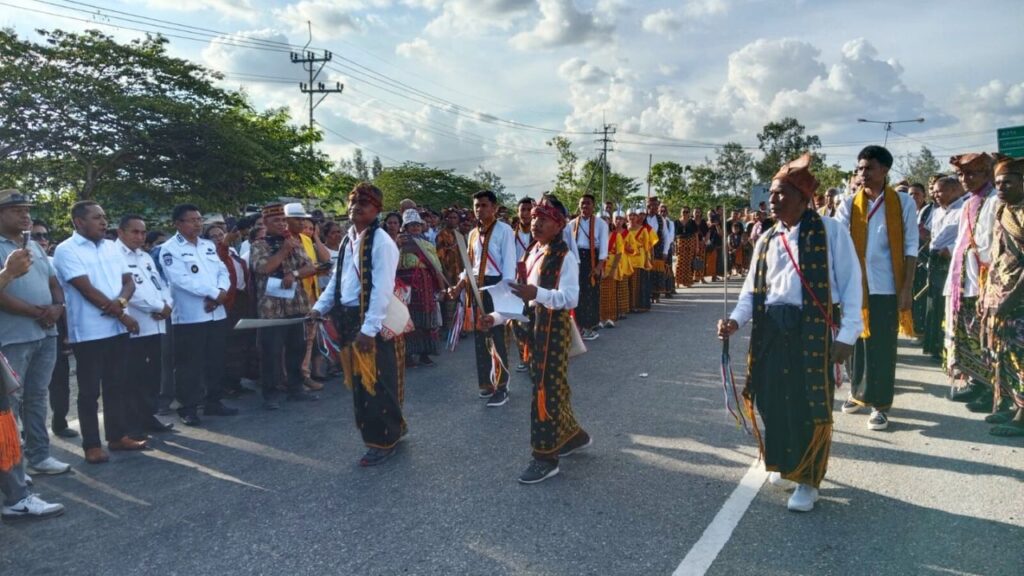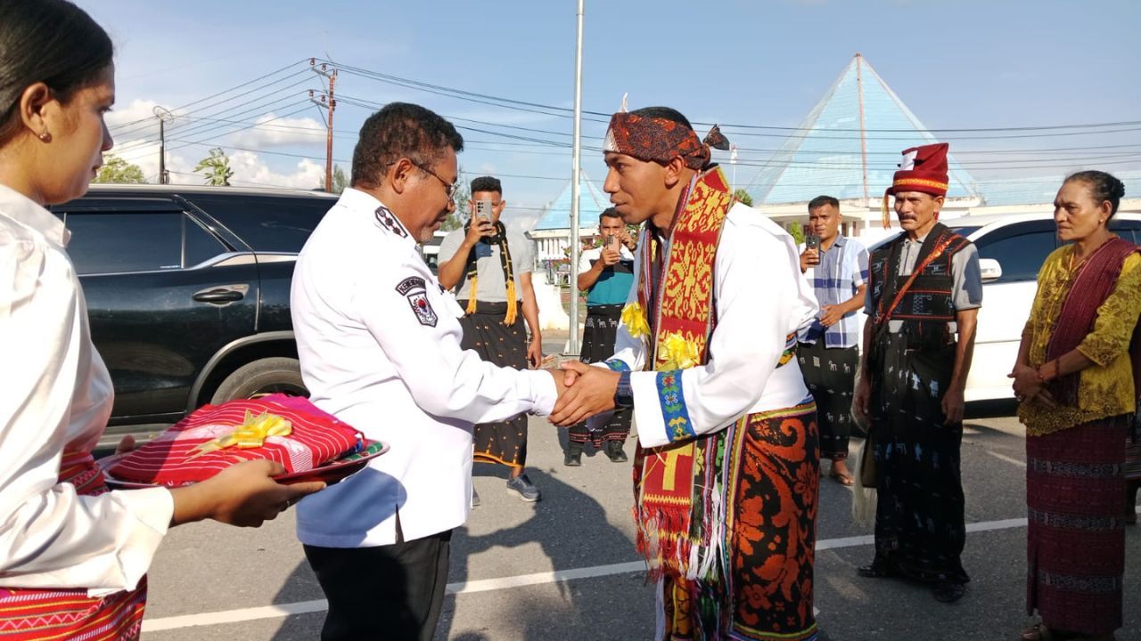 Selain Wabup TTU, turut hadir Sekda TTU, Fransiskus Bait Fay., S.Pt., M.Si., Ketua DPRD TTU, Kristoforus Efi, S.T., serta sejumlah ADPRD TTU lainnya, tokoh adat, tokoh masyarakat dan keluarga. Saat penyambutan secara adat takanab, pengalungan selendang dan tari-tarian.