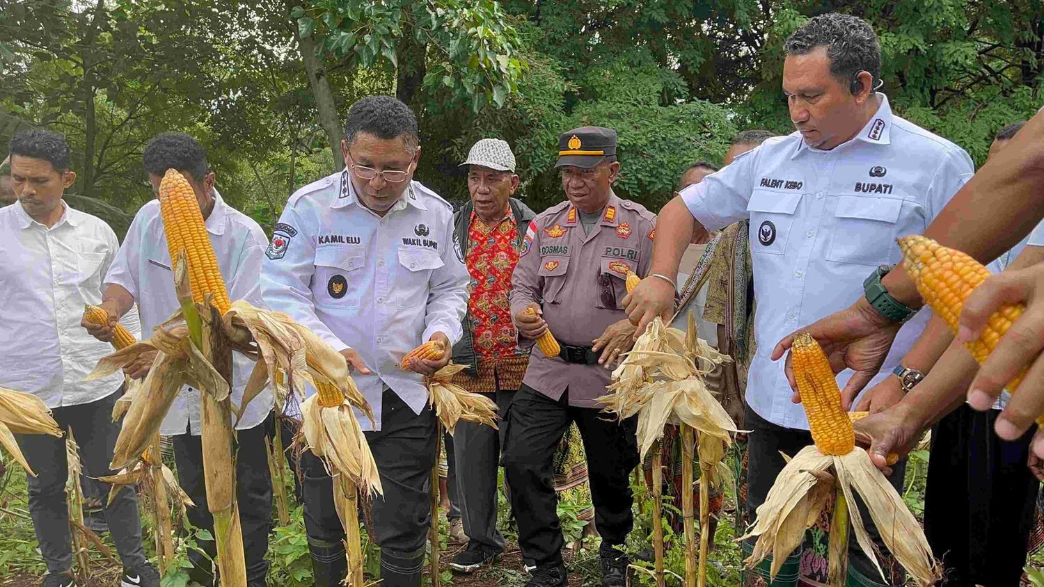 Panen simbolis tersebut dilakukan langsung oleh Bupati TTU, Yosep Falentinus Delasalle Kebo, S.Ip., M.A bersama Wakil Bupati TTU, Kamilus Elu, S.H, didampingi Plt. Kepala Dinas Pertanian Kabupaten TTU, Chairel Malelak, S.P., M.Si, Camat Bikomi Nilulat, para penyuluh pertanian, perwakilan Polres TTU, tokoh masyarakat, tokoh adat, para petani, serta sejumlah pihak terkait lainnya.
