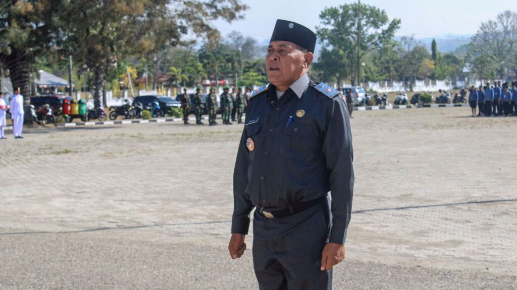 Kepala Dinas Kepemudaan dan Olahraga TTU, Hieronimus K. Bana, SH saat bertindak sebagai pemimpin upacara dalam upacara tersebut, Selasa (28/10/2025). (Foto : Ferry/Kominfotik TTU)
