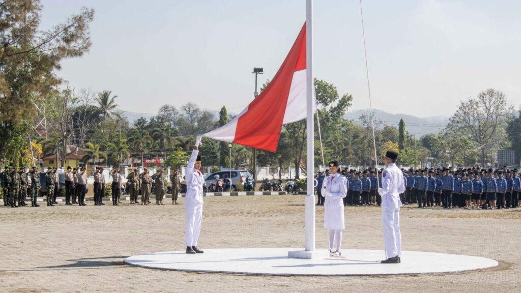Suasana pengibaran bendera merah putih dalam upacara peringatan Hari Sumpah Pemuda ke-97 Tahun 2025 tingkat Kabupaten TTU, Selasa (28/10/2025) (Foto : Ferry/Kominfotik TTU)