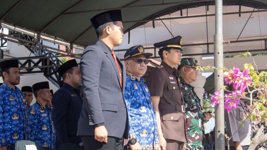 Dandim 1618 TTU, perwakilan Kajari dan Para pejabat terkait saat mengikuti upacara peringatan Hari Sumpah Pemuda ke-97 Tahun 2025 tingkat Kabupaten TTU, Selasa (28/10/2025). (Foto : Ferry/Kominfotik TTU)