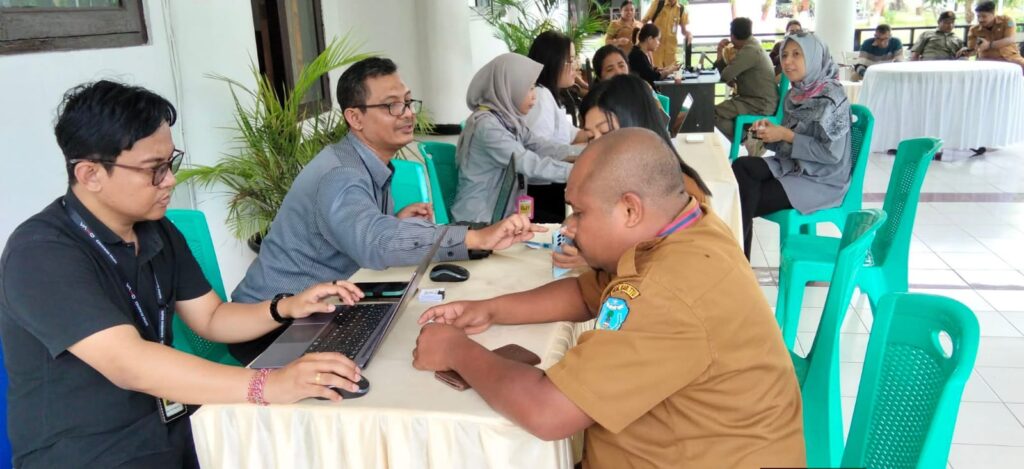 Sebelum kegiatan sosialisasi dimulai, petugas KPP Pratama Atambua telah membuka layanan asistensi pengisian SPT Tahunan melalui aplikasi Coretax di lobi Kantor Bupati TTU.