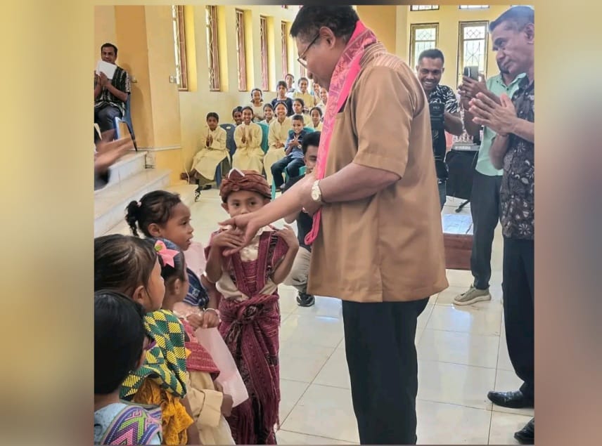 Usai misa, suasana berubah menjadi lebih cair. Sejumlah anak-anak dengan pakaian adat tampak mendekat, menyambut kehadiran orang nomor dua di TTU itu dengan rasa ingin tahu dan kegembiraan. Kamillus Elu pun menyapa mereka dengan hangat, bahkan berinteraksi langsung, menciptakan momen sederhana yang penuh makna.