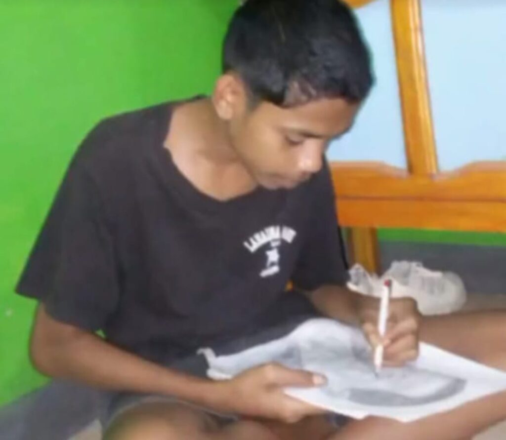 Foto : Valerio Vidigal Oki, Siswa SMK Negeri 1 Kefamenanu saat berlatih melukis.